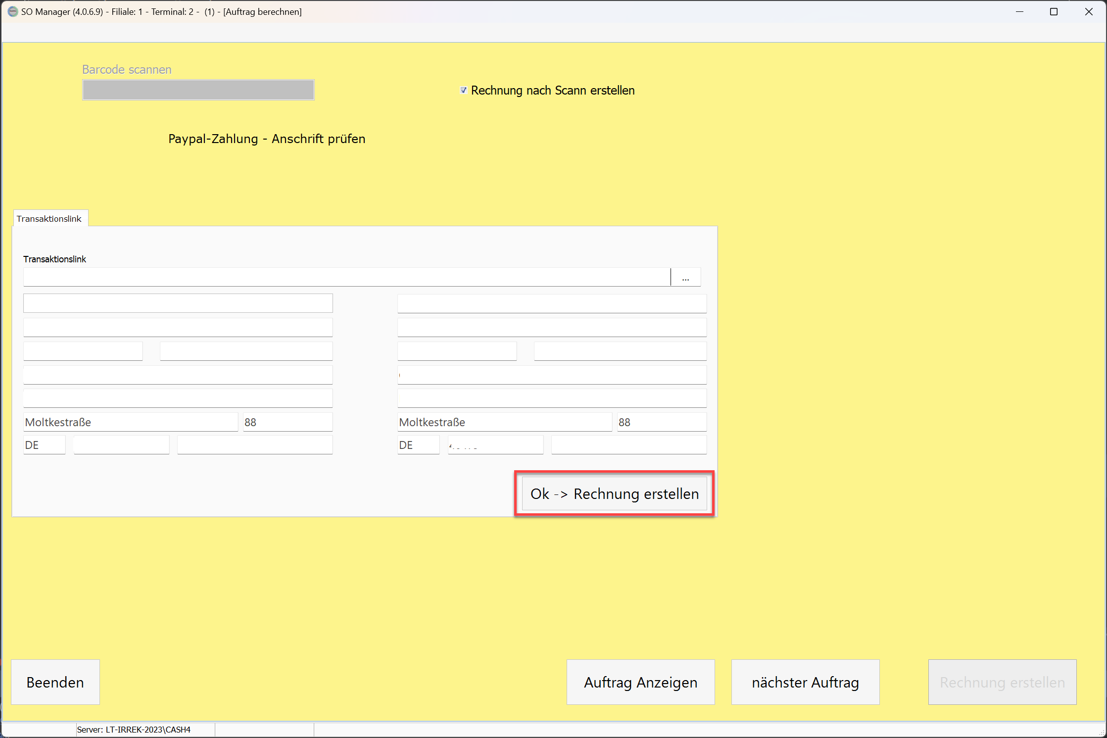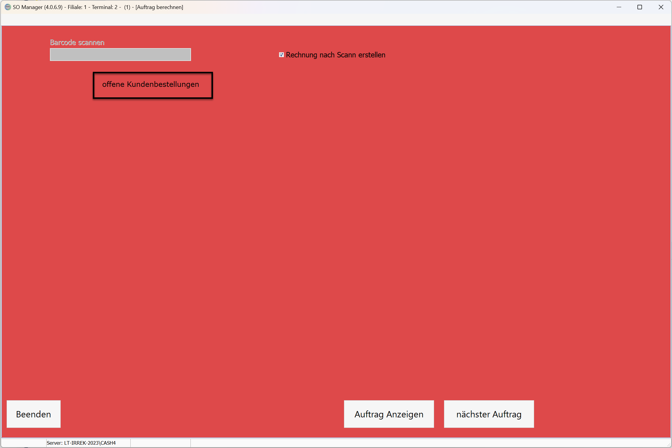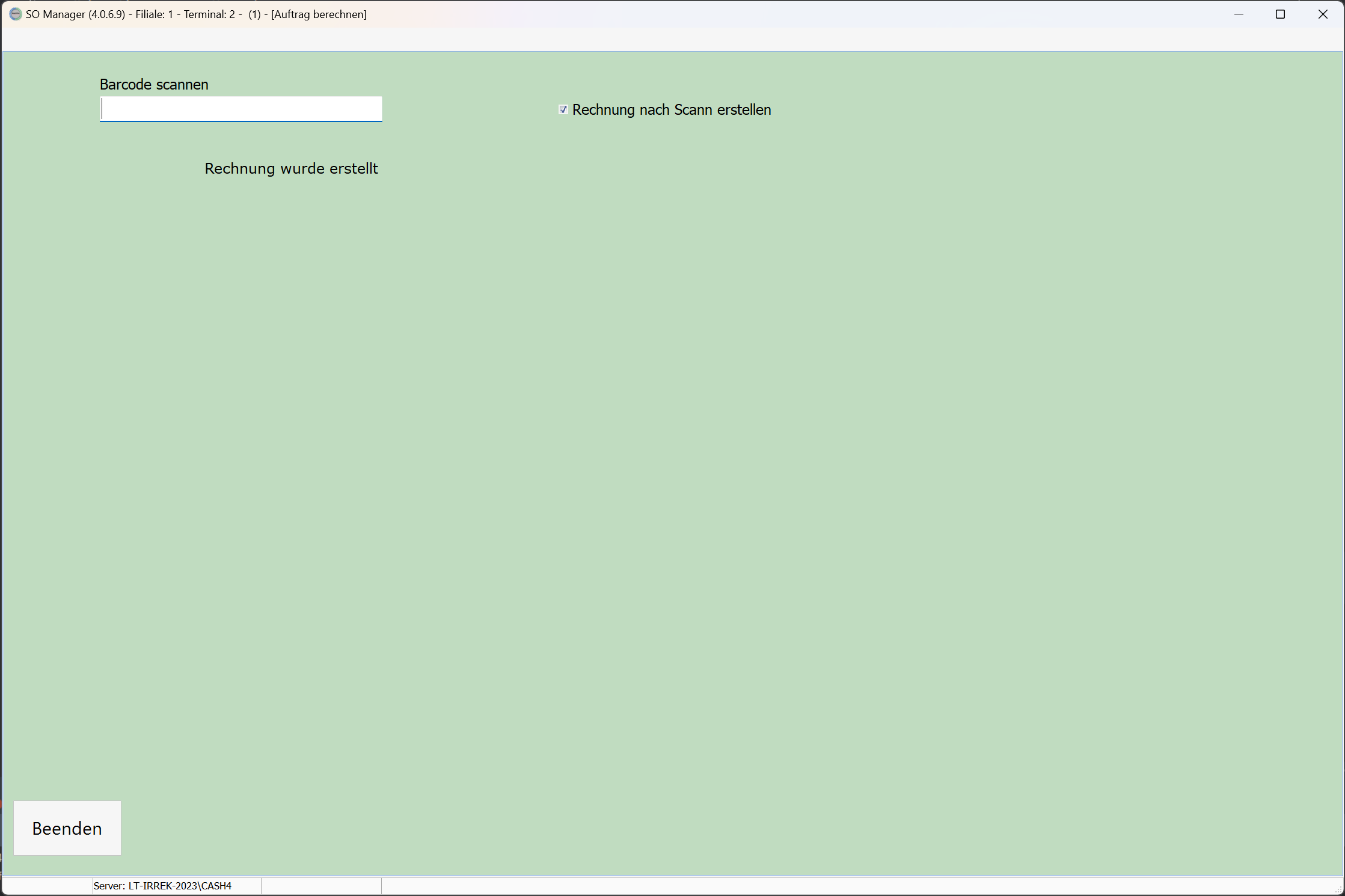 Ein Auftrag beim dem schon eine Rechnung erzeugt wurdeMit [nächster Auftrag] kann ein weiterer Auftrag gescannt werden.