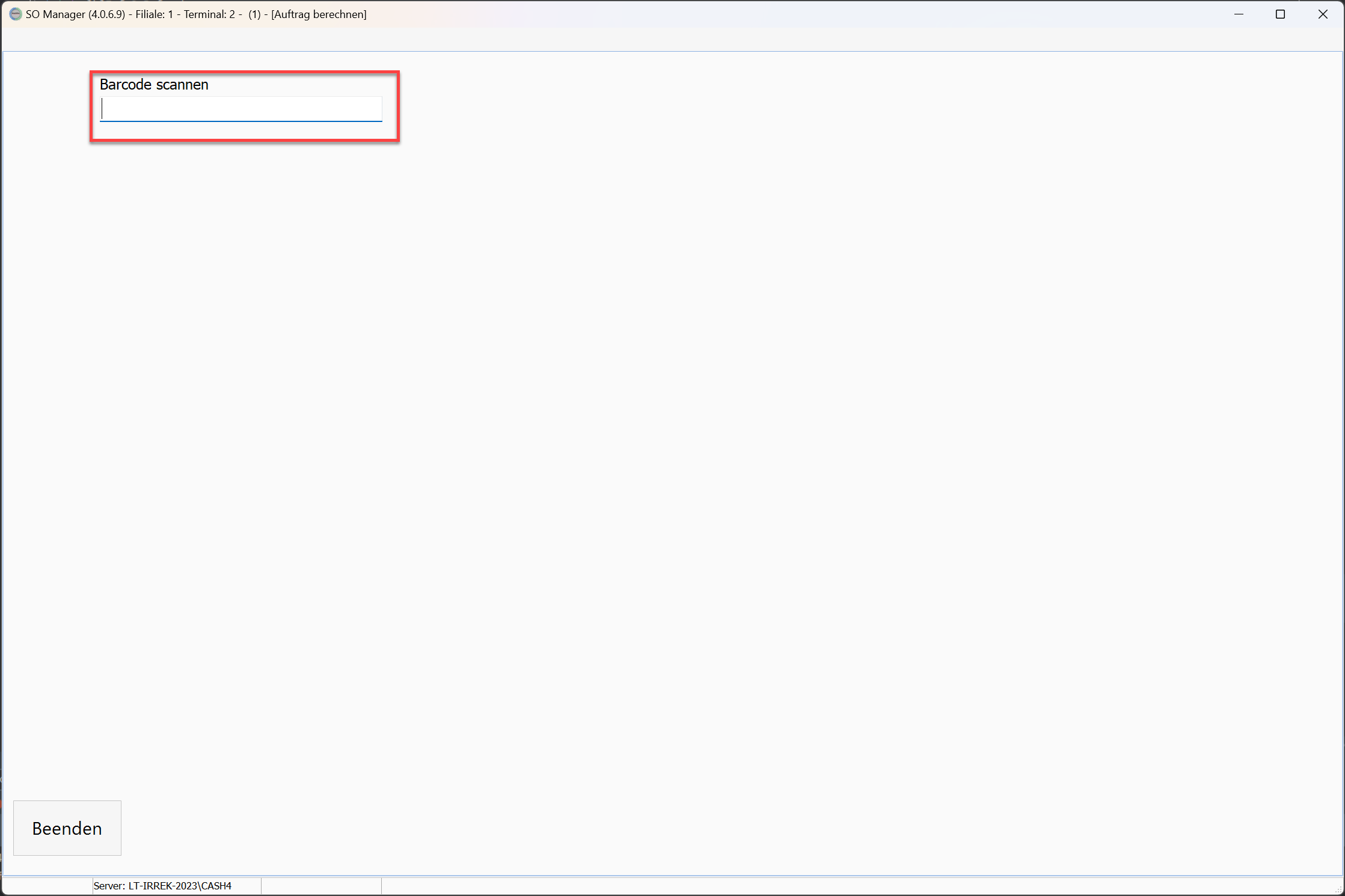 In der Ansicht "Auftrag berechnen" wird der Barcode in dem Feld "Barcode scannen" gesannt.